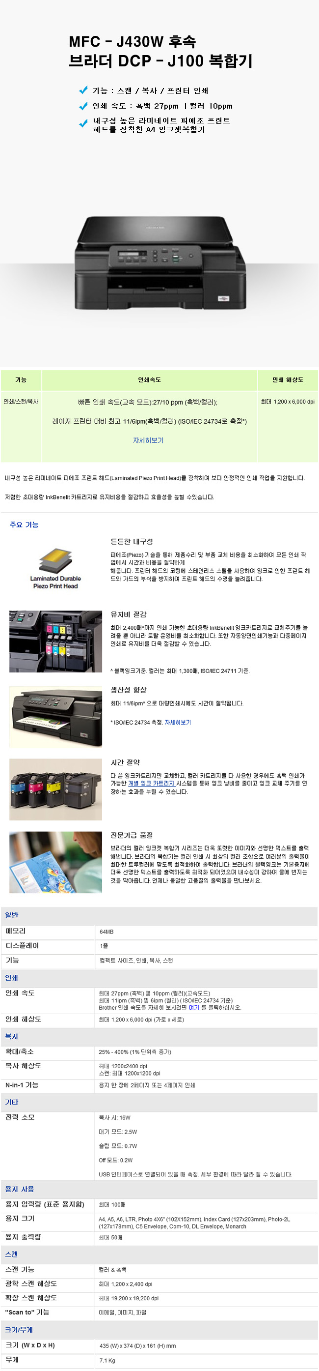 ºê¶ó´õ DCP-J100 º¹ÇÕ±â Ãâ½ÃÇÕ´Ï´Ù. |