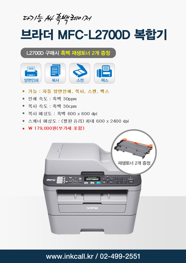 ºê¶ó´õ Èæ¹é º¹ÇÕ±â MFC2700D Çà»ç ÆÇ¸Å ÇÕ´Ï´Ù.